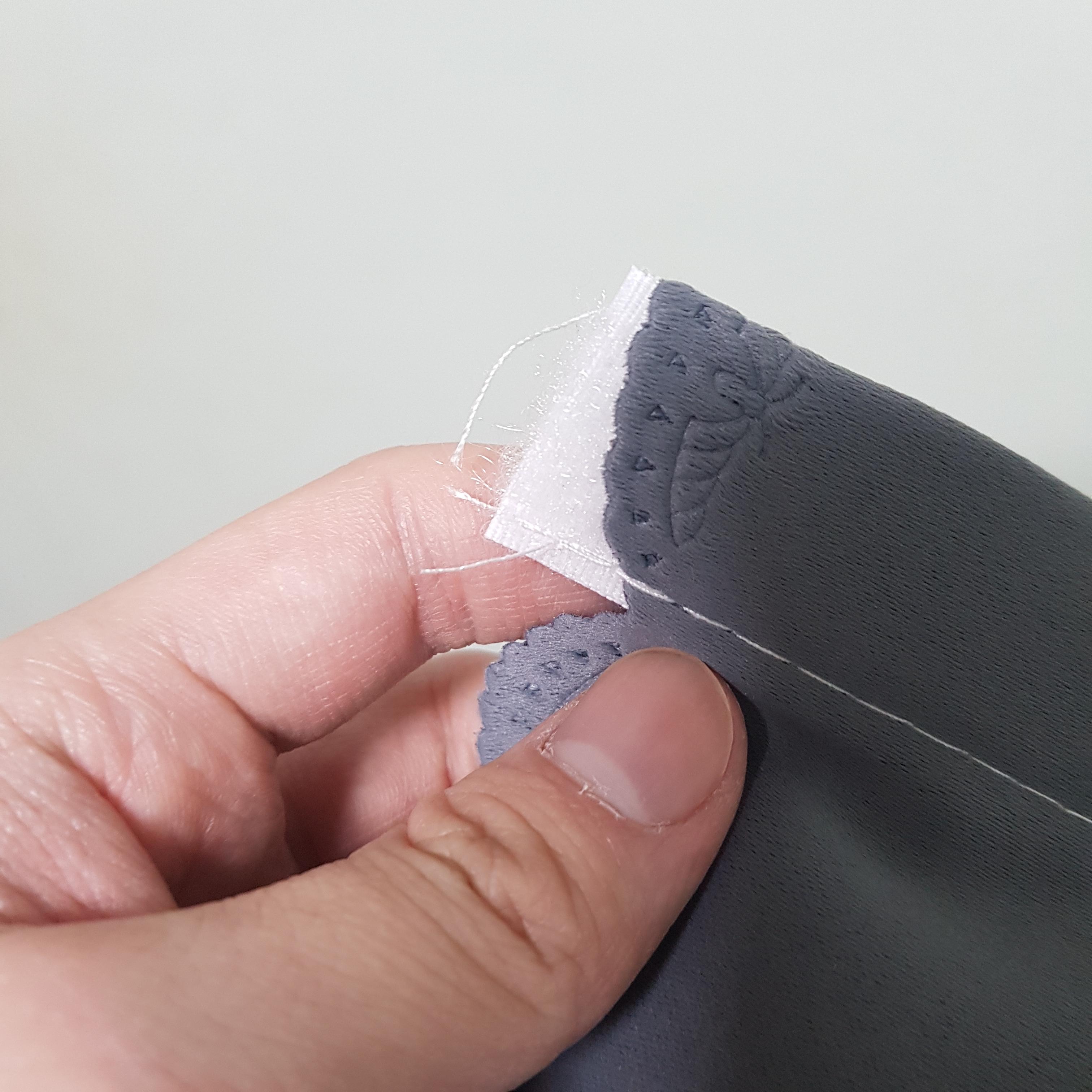 커튼의 하단 및 끝부분의 수선 모습입니다.
